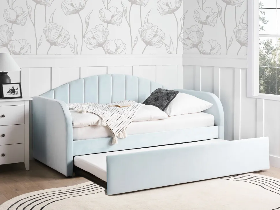 Beliani Sohvasanky Sametti Lisavuode Vaaleansininen 90 X 200 Cm Eyburie Shop