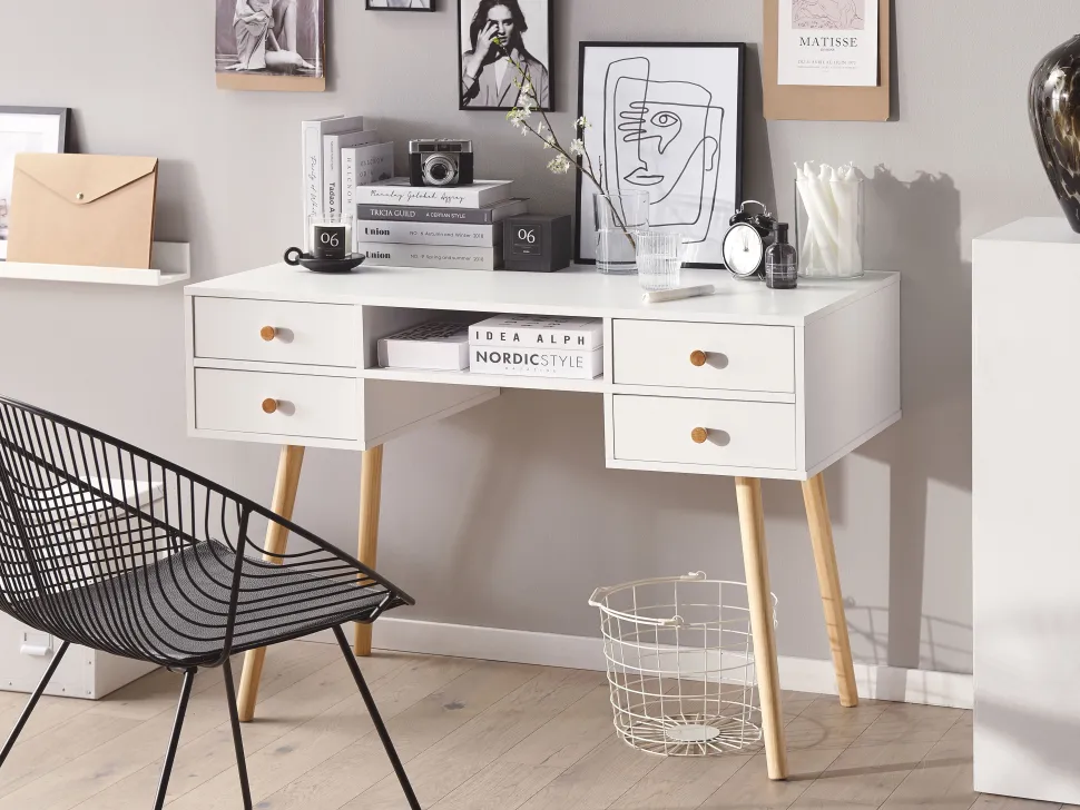 Beliani Tyopoyta 4 Laatikkoa Hylly Valkoinen 110 X 55 Cm Levin Best Sale