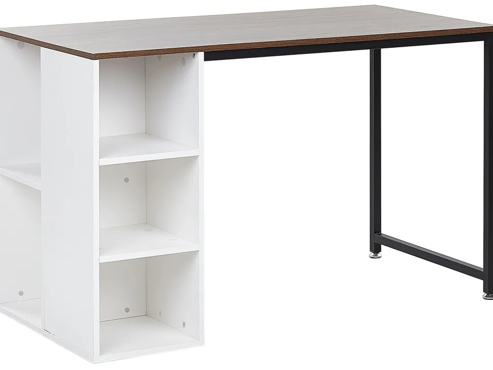 Beliani Tyopoyta 5 Hyllya Tumma Puu/Valkoinen 120 X 60 Cm Dese Cheap