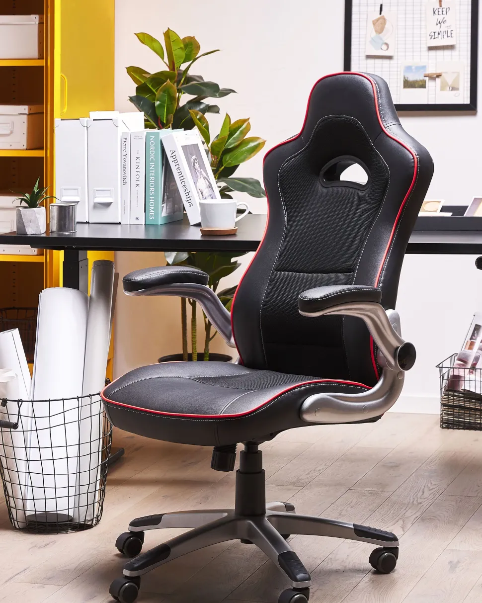 Beliani Tyotuoli Keinonahka Musta/Punainen Master Fashion