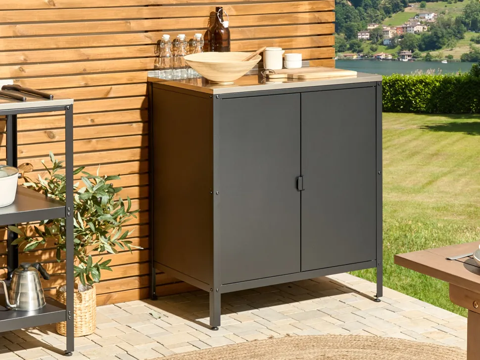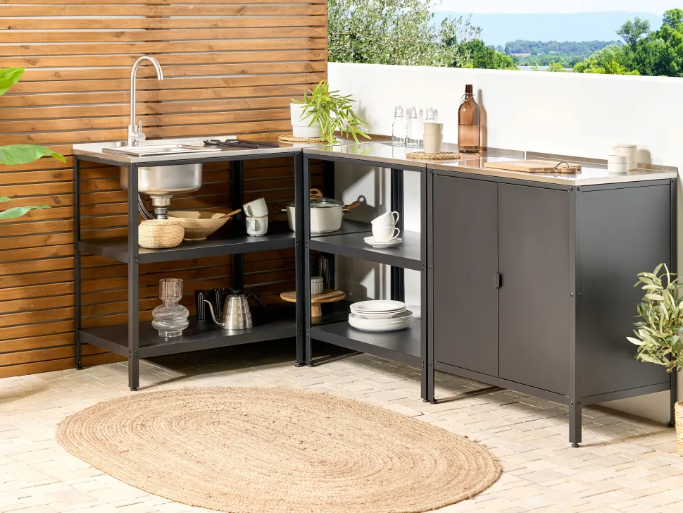 Beliani Ulkokeittiokaappi Teras 2 Ovea Musta Vilama Fashion