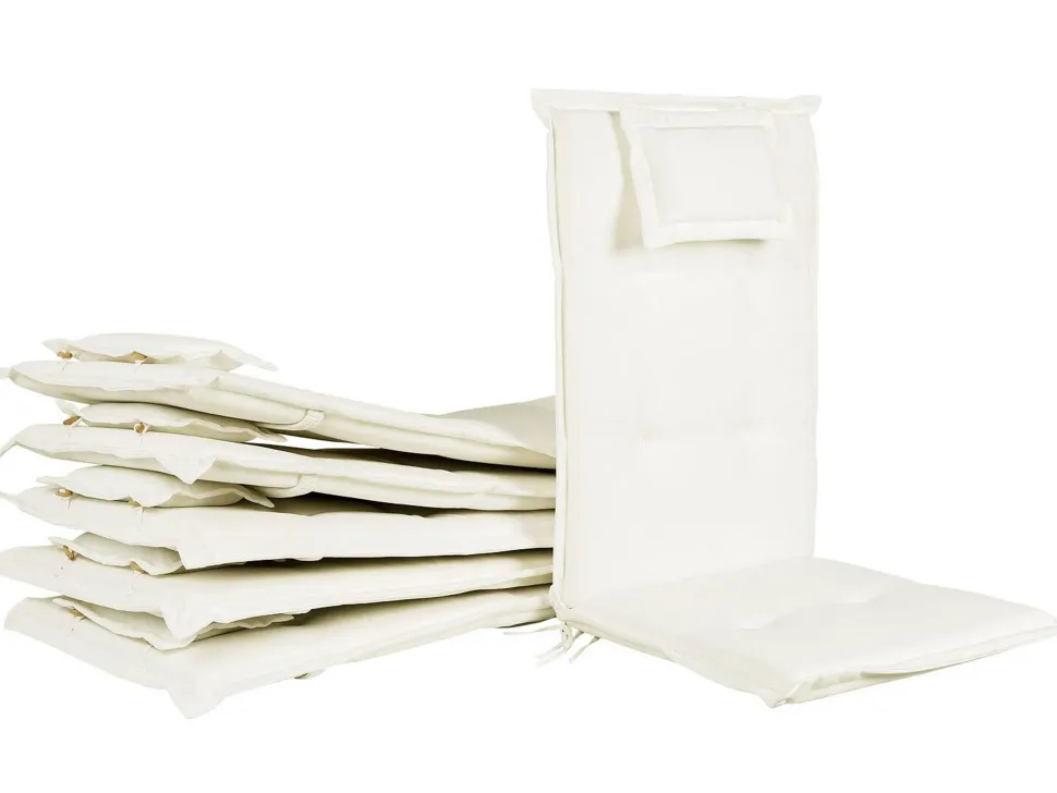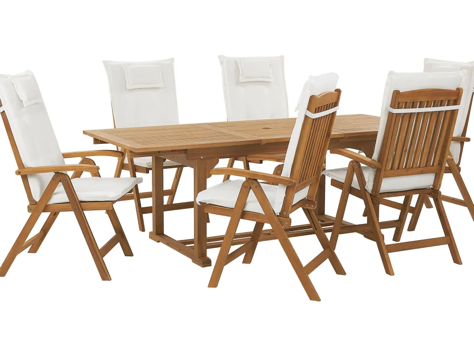 Beliani Ulkoruokailuryhma 6-Istuttava Akaasiapuinen Luonnonvalkoisilla Pehmusteilla Java New