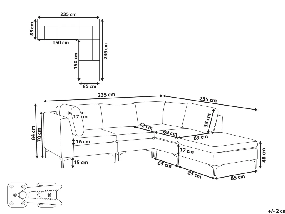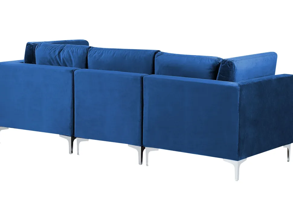 Beliani 4-Istuttava Kulmasohva Ja Rahi Sametti Vasenk. Laivastonsininen Evja Cheap