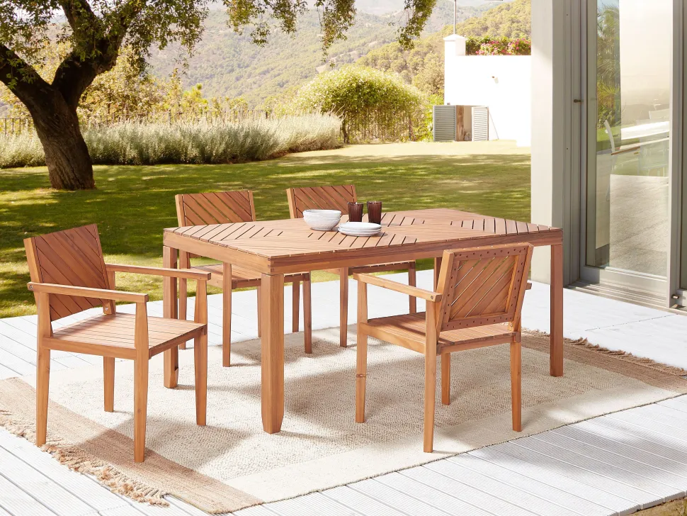 Beliani 4-Istuttava Ulkoruokailuryhma Akaasia Vaalea Puu Baratti Outlet