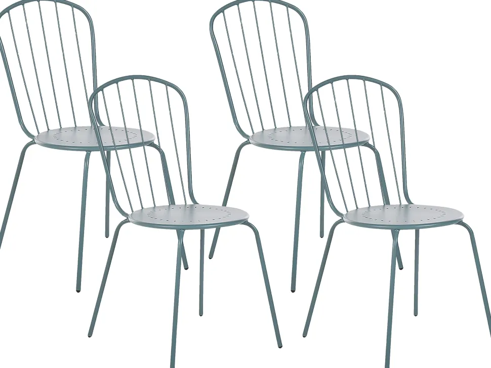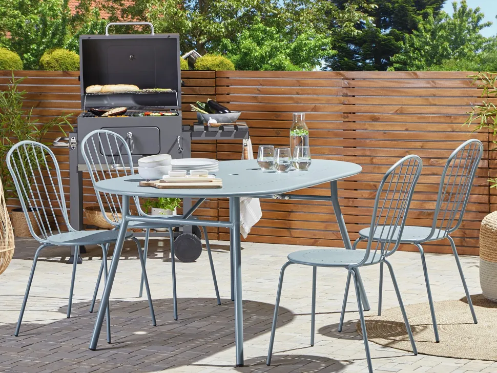 Beliani 4-Istuttava Ulkoruokailuryhma Aurinkovarjolla Teras Vaaleansininen Calvi Store