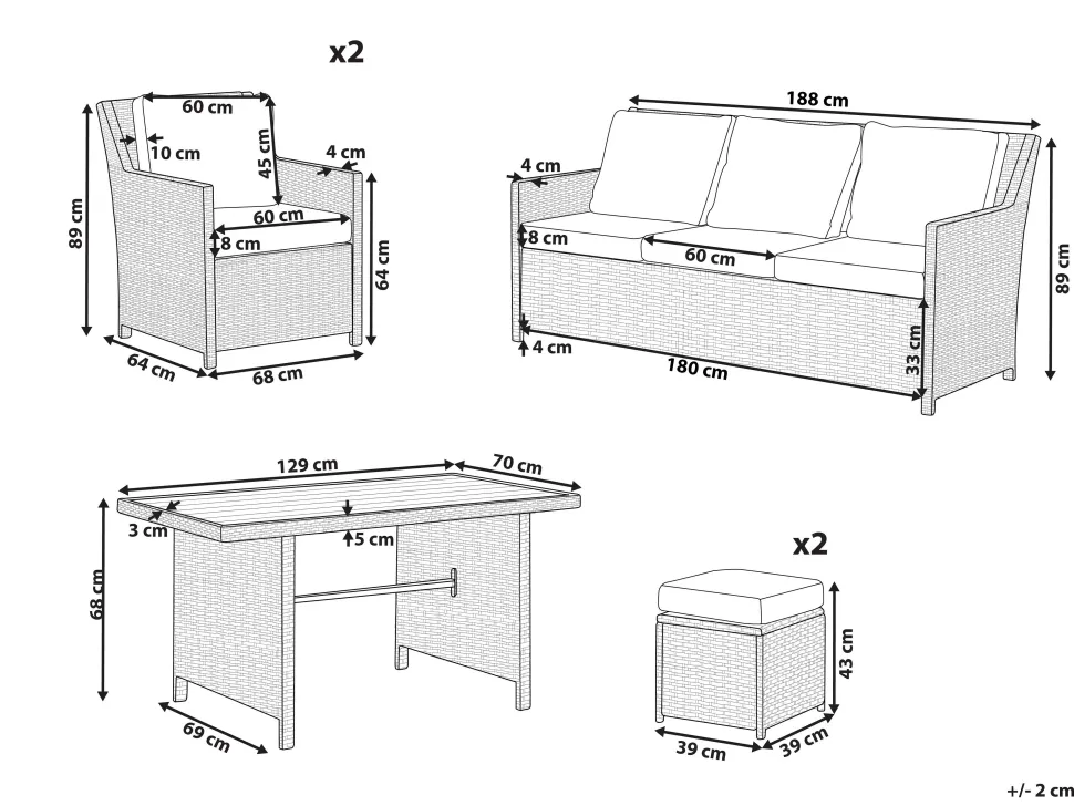Beliani 5-Istuttava Ulkosohvaryhma Polyrottinki Ruskea Fonti Discount