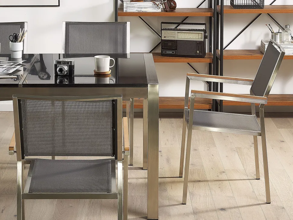 Beliani 6-Istuttava Ulkoruokailuryhma 3-Osainen Graniittitaso Ja Tekstiilituolit Harmaa Grosseto Best Sale