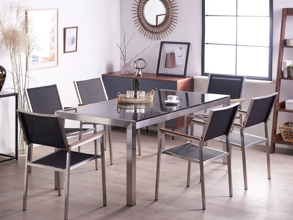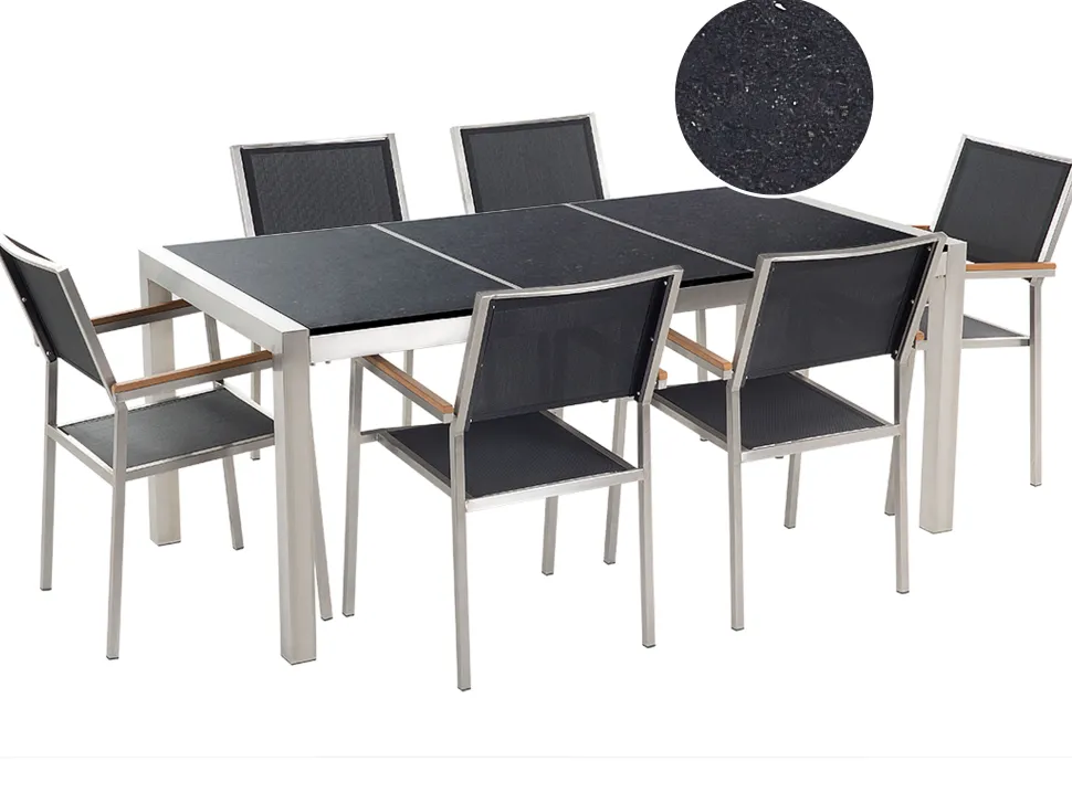 Beliani 6-Istuttava Ulkoruokailuryhma 3-Osainen Graniittitaso Tekstiilituolit Musta Grosseto Online