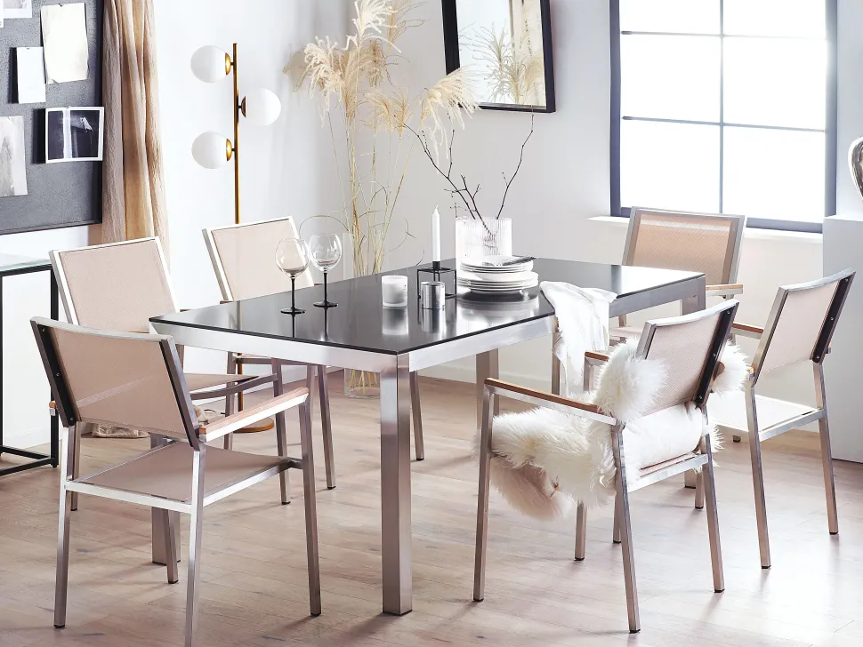 Beliani 6-Istuttava Ulkoruokailuryhma Graniittitaso Tekstiilituolit Musta/Beige Grosseto Cheap