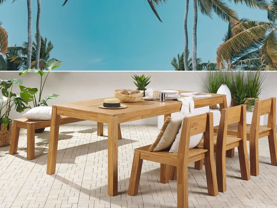 Beliani 6-Istuttava Vaalea Akaasiapuinen Ulkoruokailuryhma Penkilla Ja Tuoleilla Livorno Cheap