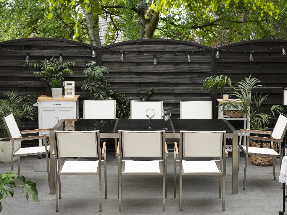 Beliani 8-Istuttava Ulkoruokailuryhma 3-Osainen Graniittitaso Tekstiilituolit Musta/Valkoinen Grosseto Store
