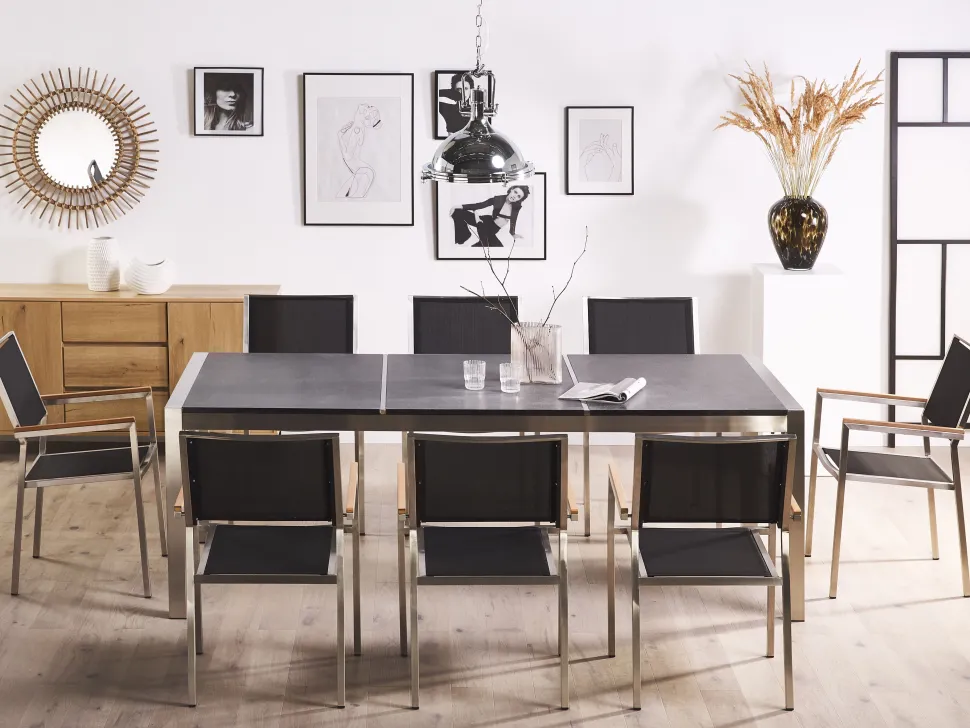 Beliani 8-Istuttava Ulkoruokailuryhma Poltettu Graniittitaso Ja Tekstiilituolit Musta Grosseto Store