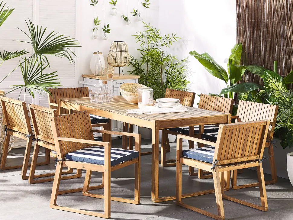 Beliani 8 Kpl Setti Puutarhatuolin Pehmusteita Sini-Valkoraidallinen Sassari Clearance
