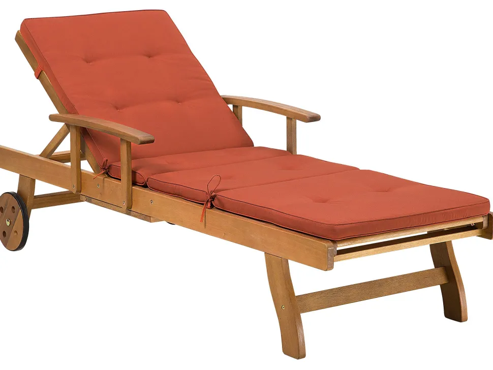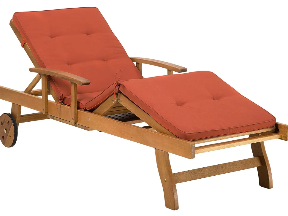 Beliani Akaasiapuinen Aurinkotuoli Tummanpunaisella Pehmusteella Java Fashion