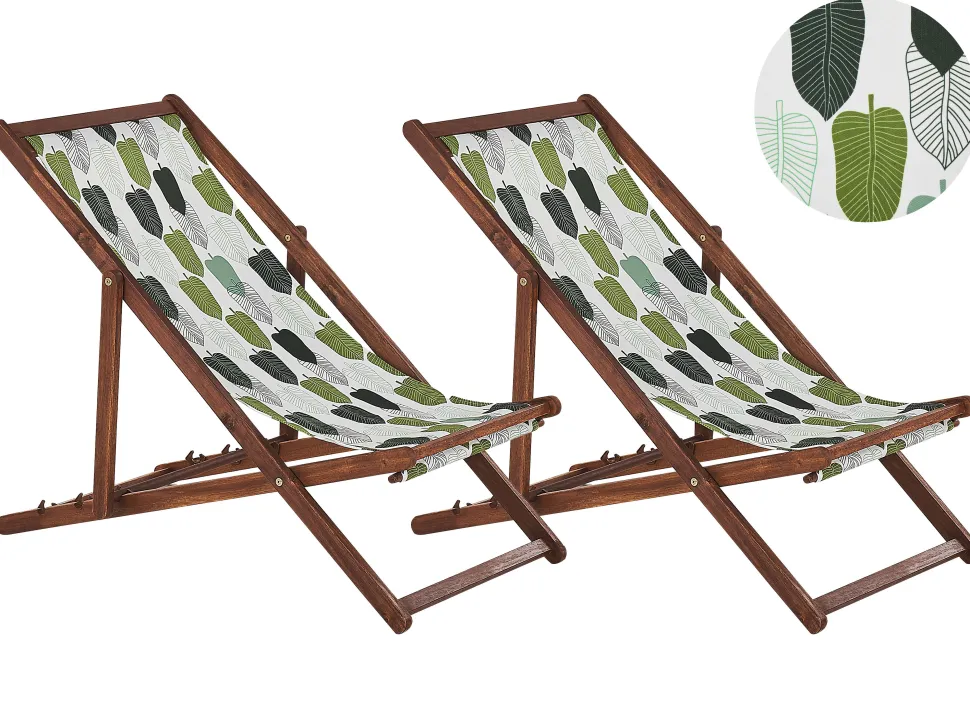 Beliani Aurinkotuoli Tumma Akaasia Vaihtokankaat Luonnonvalkoinen/Vihrea Lehdet 2 Kpl Anzio Online