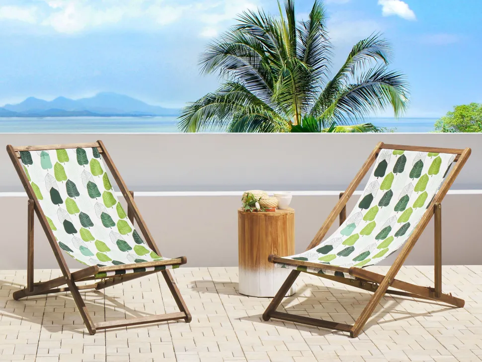 Beliani Aurinkotuoli Vaalea Akaasia Vaihtokankaat Luonnonvalkoinen/Vihrea Lehdet 2 Kpl Anzio Hot