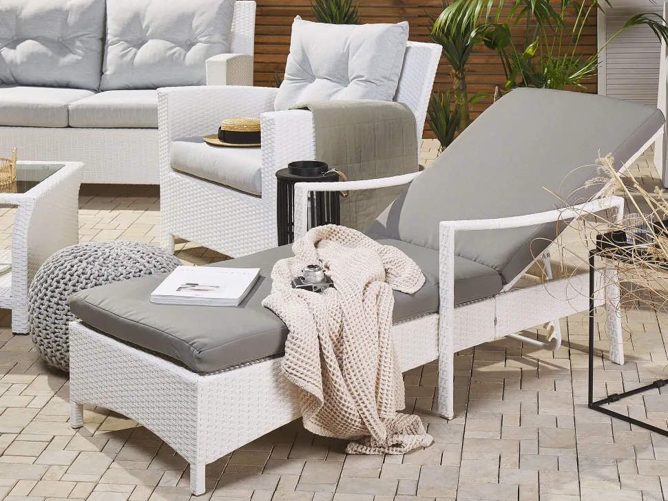 Beliani Aurinkotuoli Valkoinen Harmaalla Istuintyynylla Vasto New