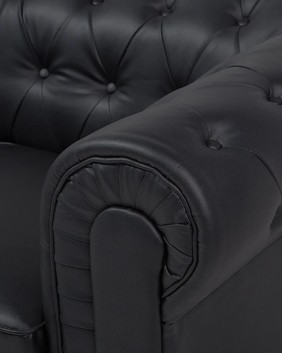 Beliani Iso Musta Keinonahkaverhoiltu Nojatuoli Chesterfield Clearance