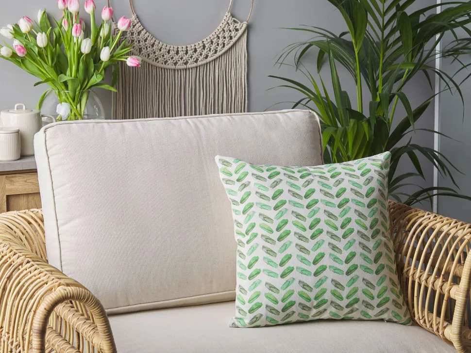 Beliani Koristetyyny Kangas Valkoinen/Vihrea 45 X 45 Cm 2 Kpl Prunus Flash Sale