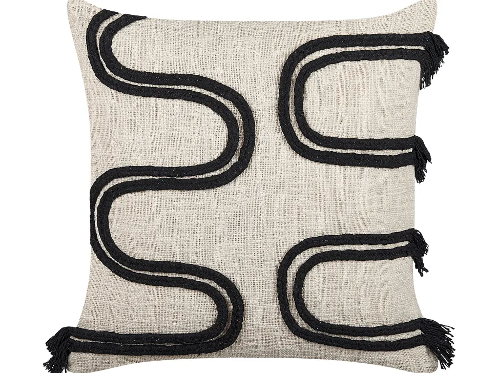 Beliani Koristetyyny Puuvilla Beige/Musta 45 X 45 Cm 2 Kpl Fuchsia Sale
