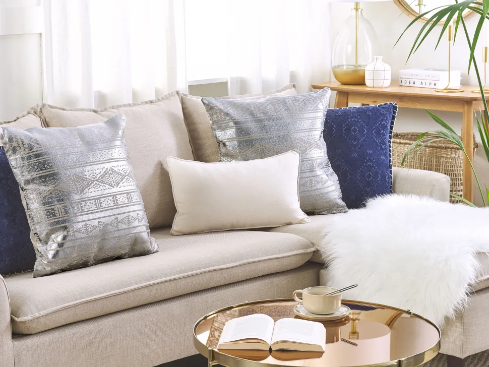 Beliani Koristetyyny Puuvilla Hopea Geometrinen Kuvio 50 X 50 Cm 2 Kpl Oujda Shop