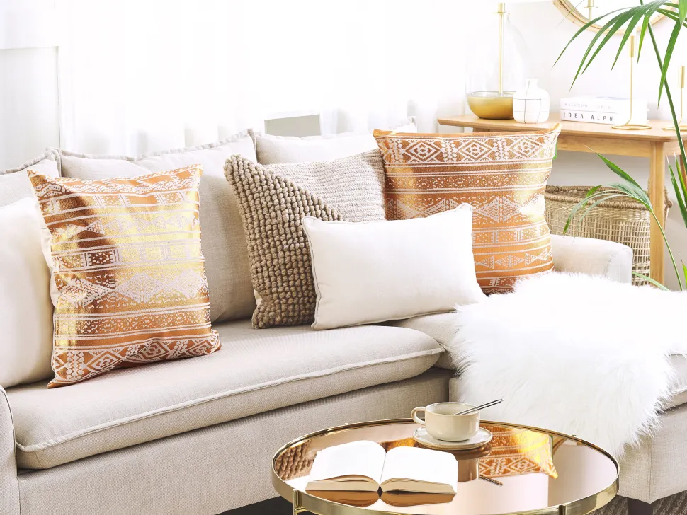 Beliani Koristetyyny Puuvilla Kupari Geometrinen Kuvio 50 X 50 Cm Oujda Best Sale