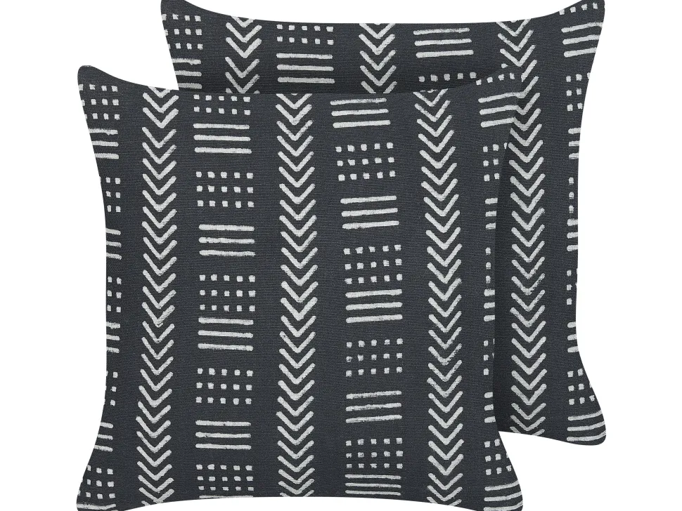 Beliani Koristetyyny Puuvilla Musta/Valkoinen 45 X 45 Cm 2 Kpl Benzoin Sale