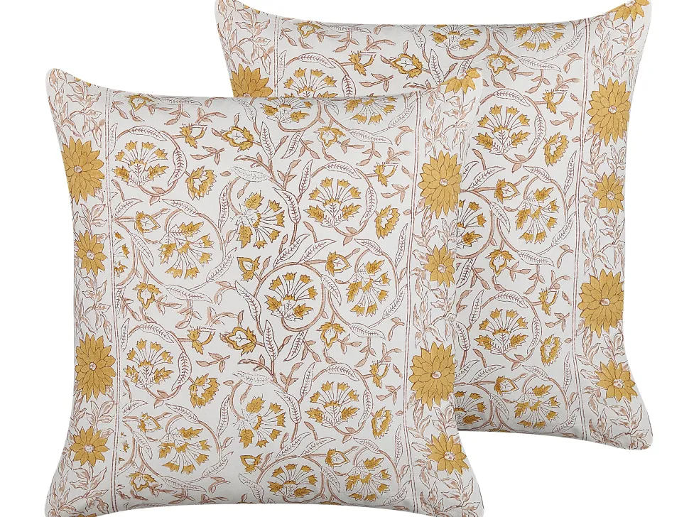 Beliani Koristetyyny Puuvilla Valkoinen/Keltainen 45 X 45 Cm 2 Kpl Calathea Cheap
