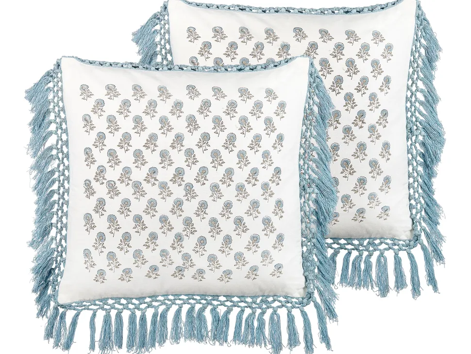 Beliani Koristetyyny Puuvilla Valkoinen/Sininen 45 X 45 Cm 2 Kpl Pallida Cheap