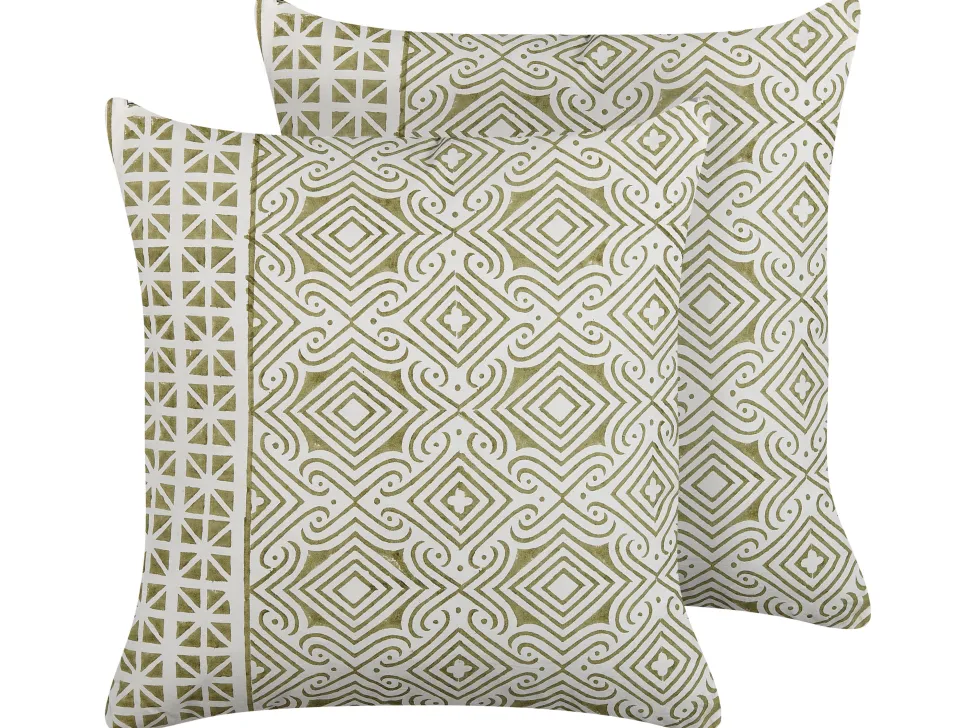 Beliani Koristetyyny Puuvilla Vihrea/Valkoinen 45 X 45 Cm 2 Kpl Larics Online