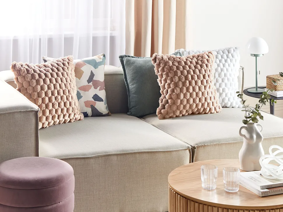 Beliani Koristetyyny Tekoturkis Hiekanruskea 43 X 43 Cm 2 Kpl Purslane Discount
