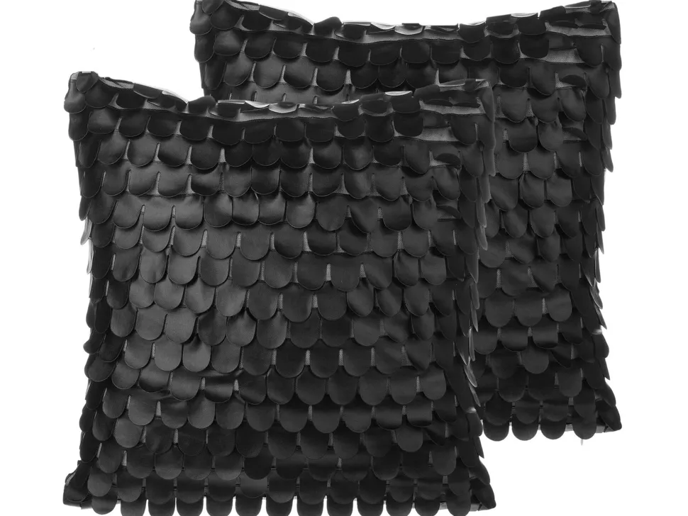 Beliani Koristetyynysetti Keinonahkaa 45X45Cm Musta Lobelia Cheap