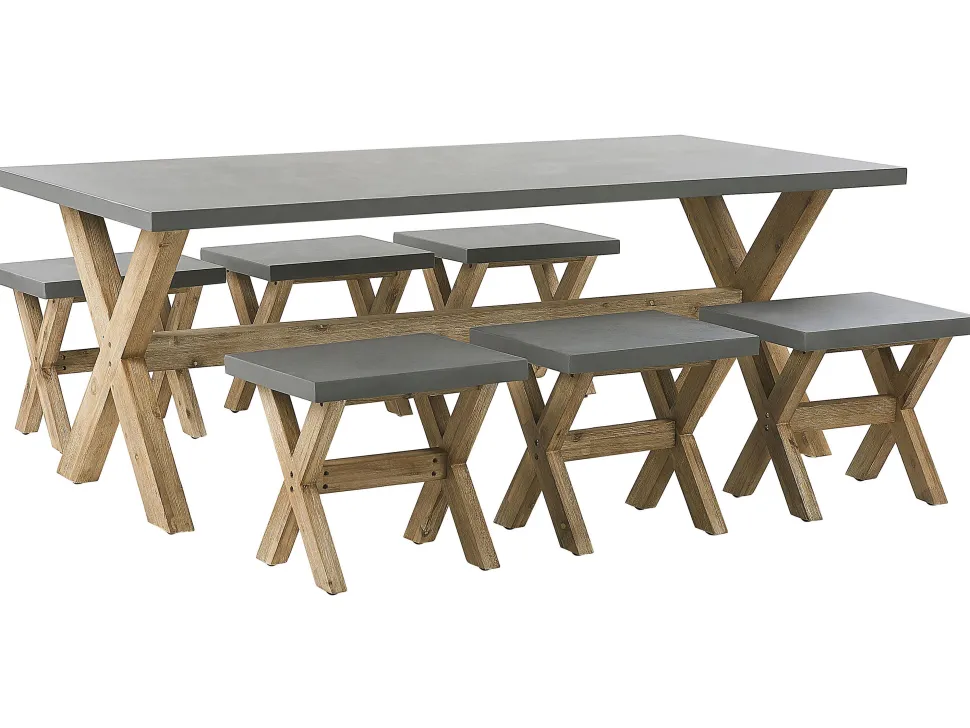 Beliani Kuitusementti Puutarhasetti 6 Jakkaralla Harmaa Olbia Best Sale