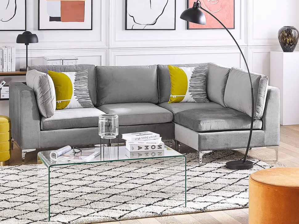 Beliani Kulmamoduuli Sametti Harmaa Evja Best Sale