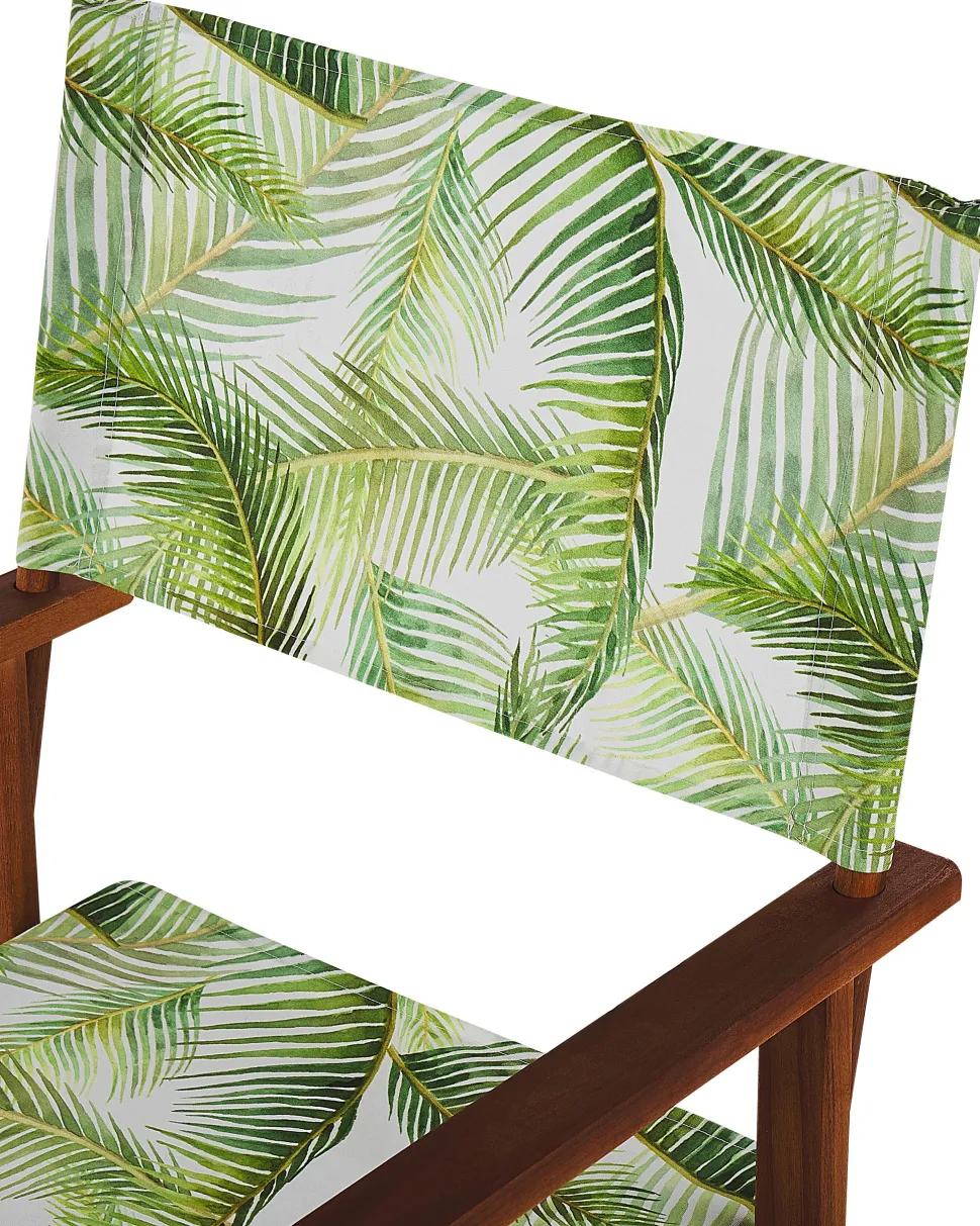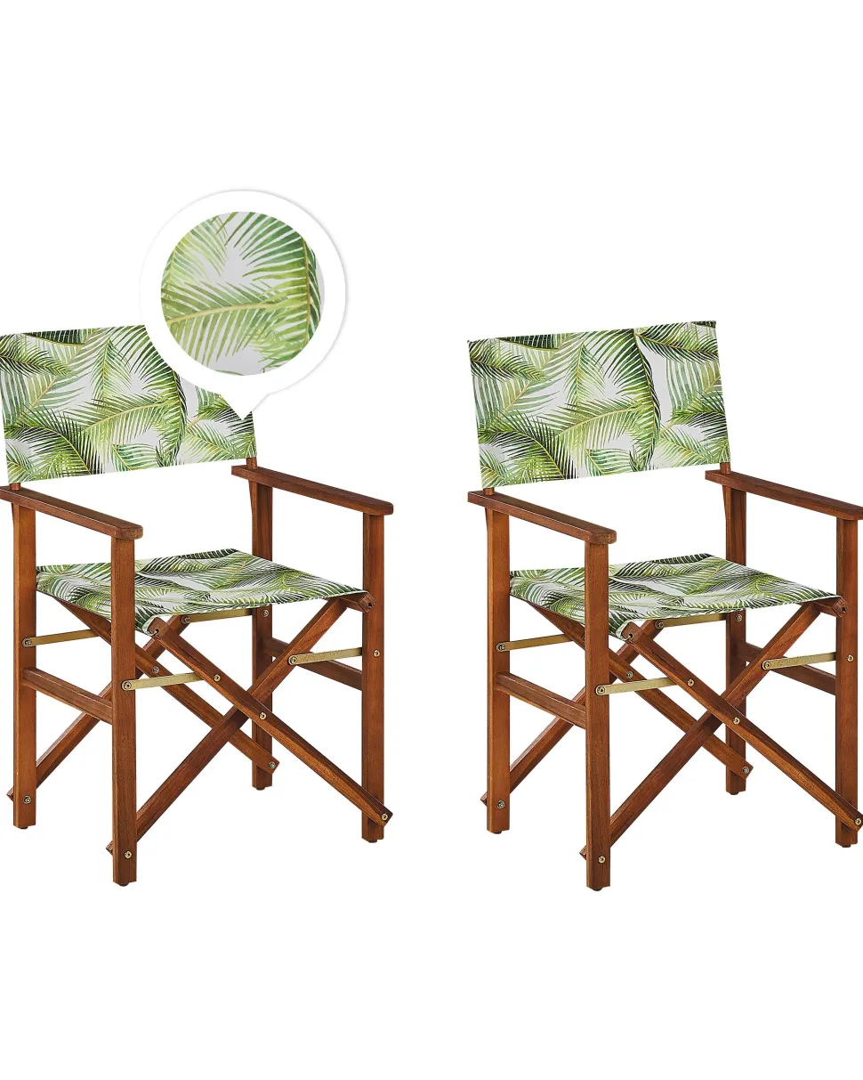 Beliani Puutarhatuoli Tumma Akasiapuu Vaihtokangas 2 Kpl Harmaa/Trooppinen Lehtikuvio 2 Kpl Cine Store