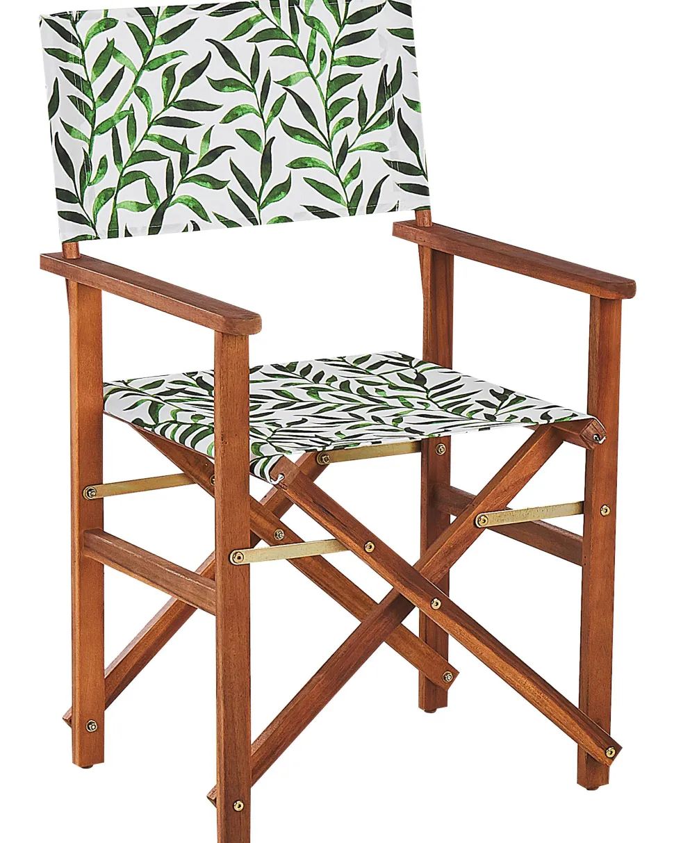 Beliani Puutarhatuoli Tumma Akasiapuu Vaihtokangas 2 Kpl Luonnonvalkoinen/Lehtikuosi 2 Kpl Cine New