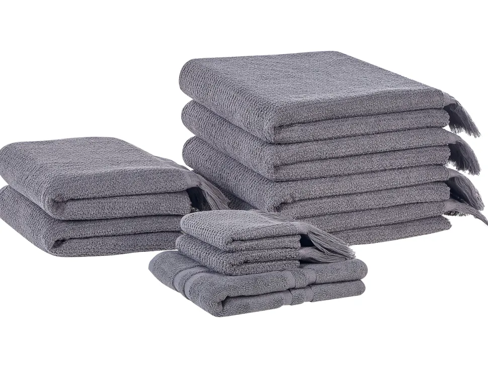 Beliani Pyyhesetti Puuvilla Harmaa 9 Kpl Atiu Outlet