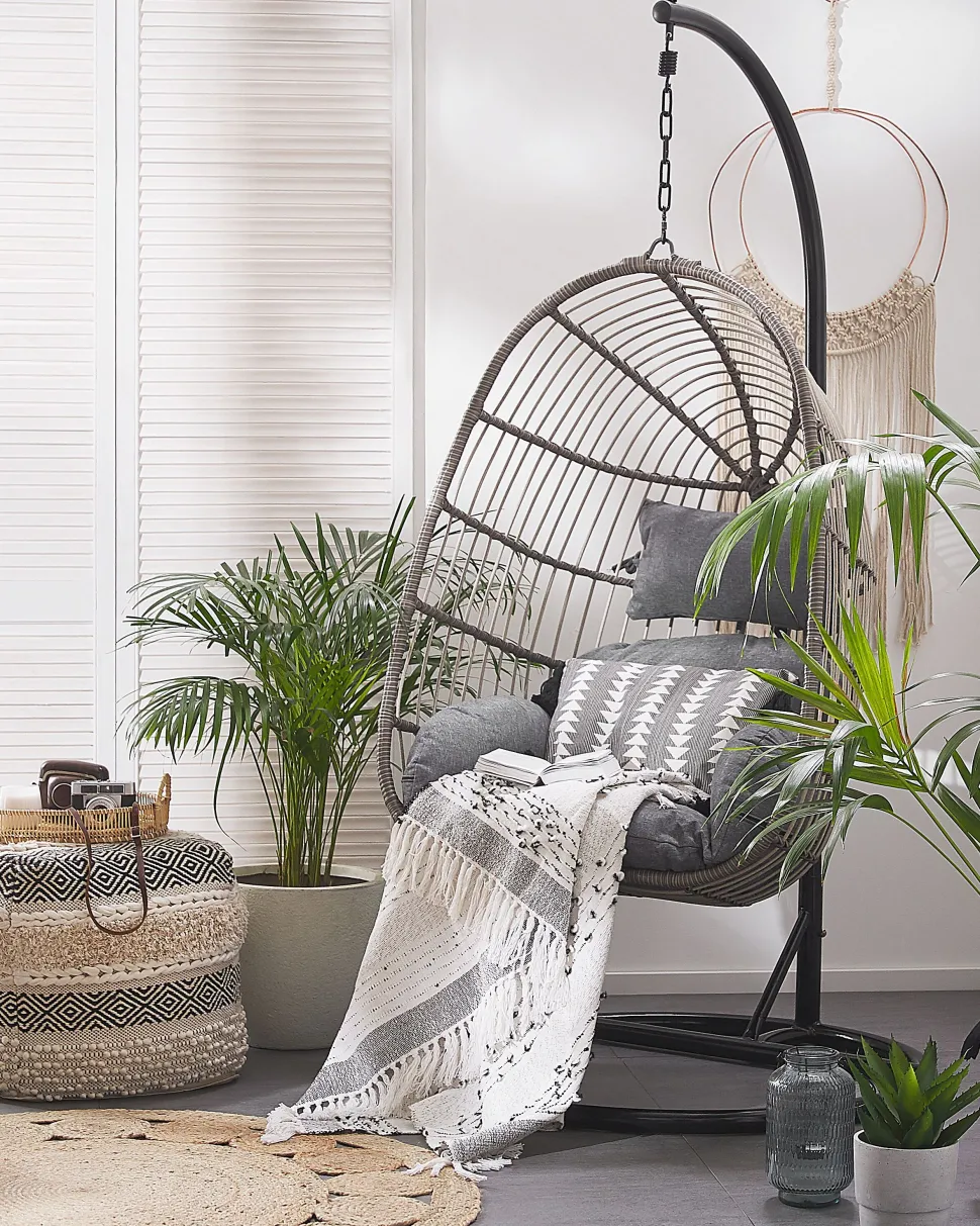 Beliani Riipputuoli Jalustalla Polyrottinki Harmaa Casoli Fashion