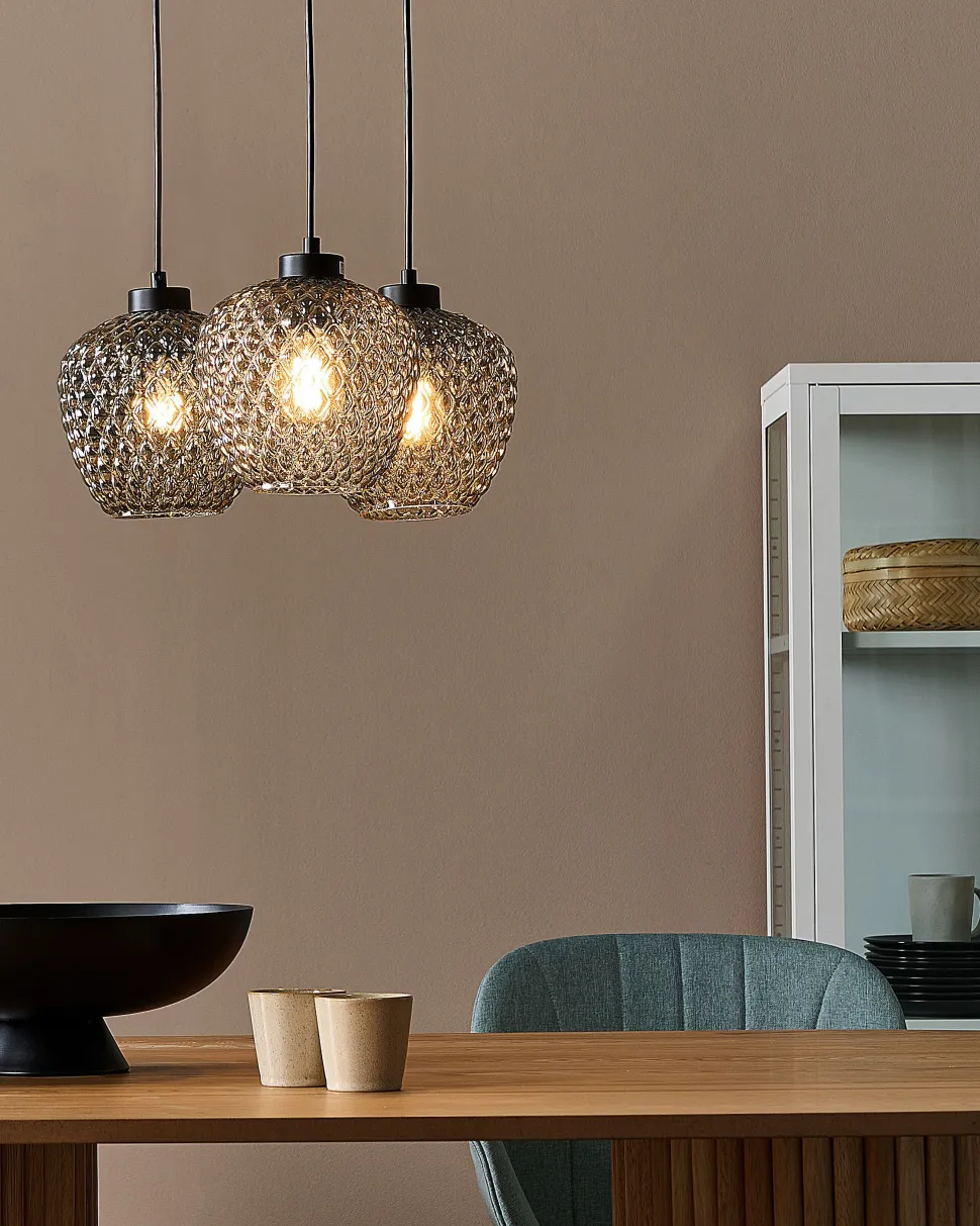Beliani Riippuvalaisin 3 Polttimoa Lasi Harmaa Sherry Cheap