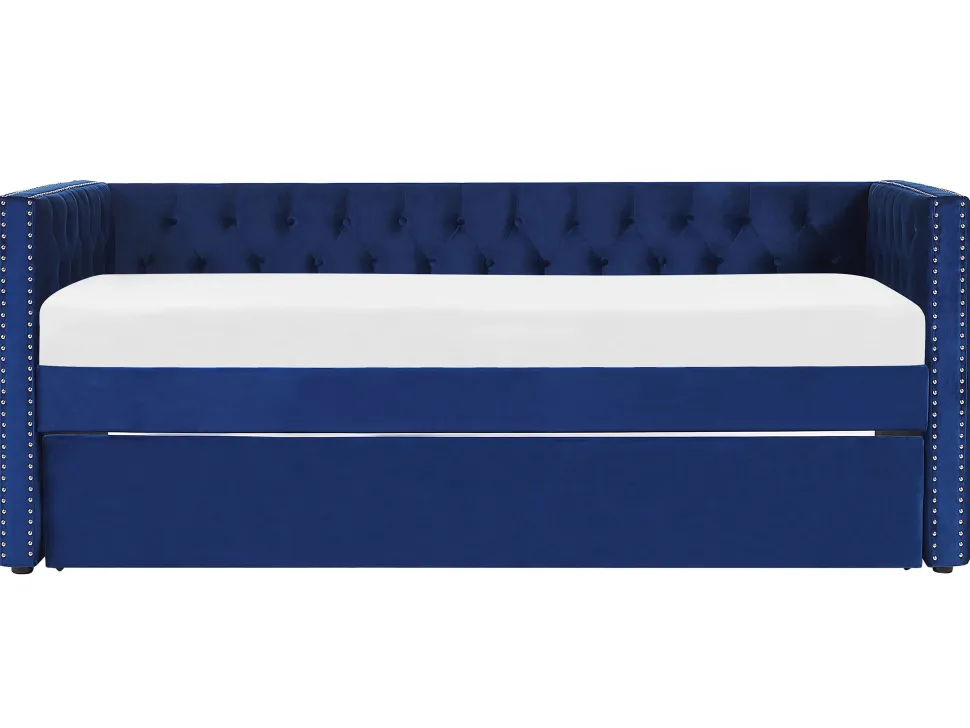Beliani Sohvasanky Sametti Lisavuode Laivastonsininen 90 X 200 Cm Gassin Shop