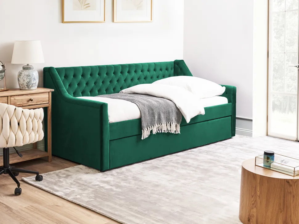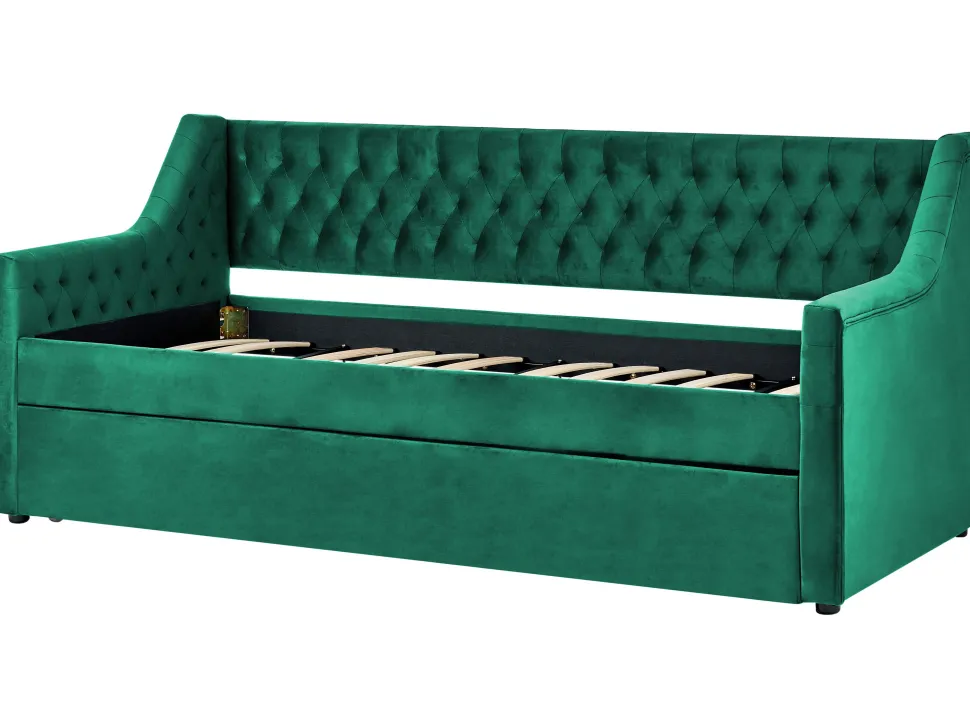 Beliani Sohvasanky Sametti Lisavuode Smaragdinvihrea 90 X 200 Cm Montargis Best Sale