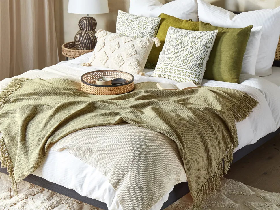 Beliani Torkkupeitto Puuvilla Oliivinvihrea 125 X 150 Cm Yarsa Flash Sale