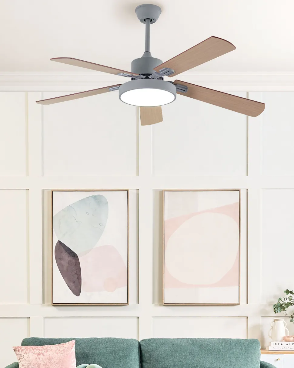 Beliani Tuuletinvalaisin Vaalea Puu/Harmaa Hobble Best