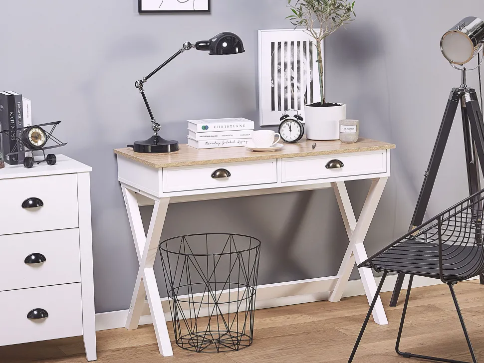 Beliani Tyopoyta 2 Laatikkoa Vaalea Puu/Valkoinen 103 X 50 Cm Ekart Flash Sale