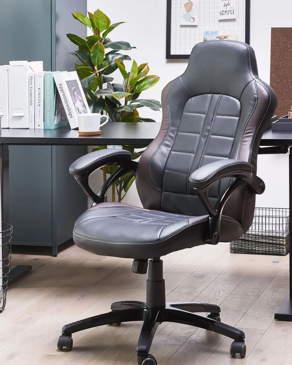 Beliani Tyotuoli Keinonahka Musta/Tummanruskea Prince Best