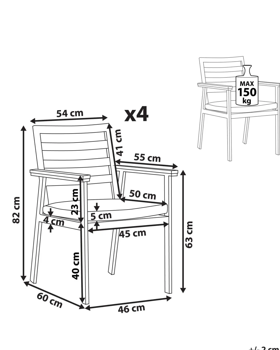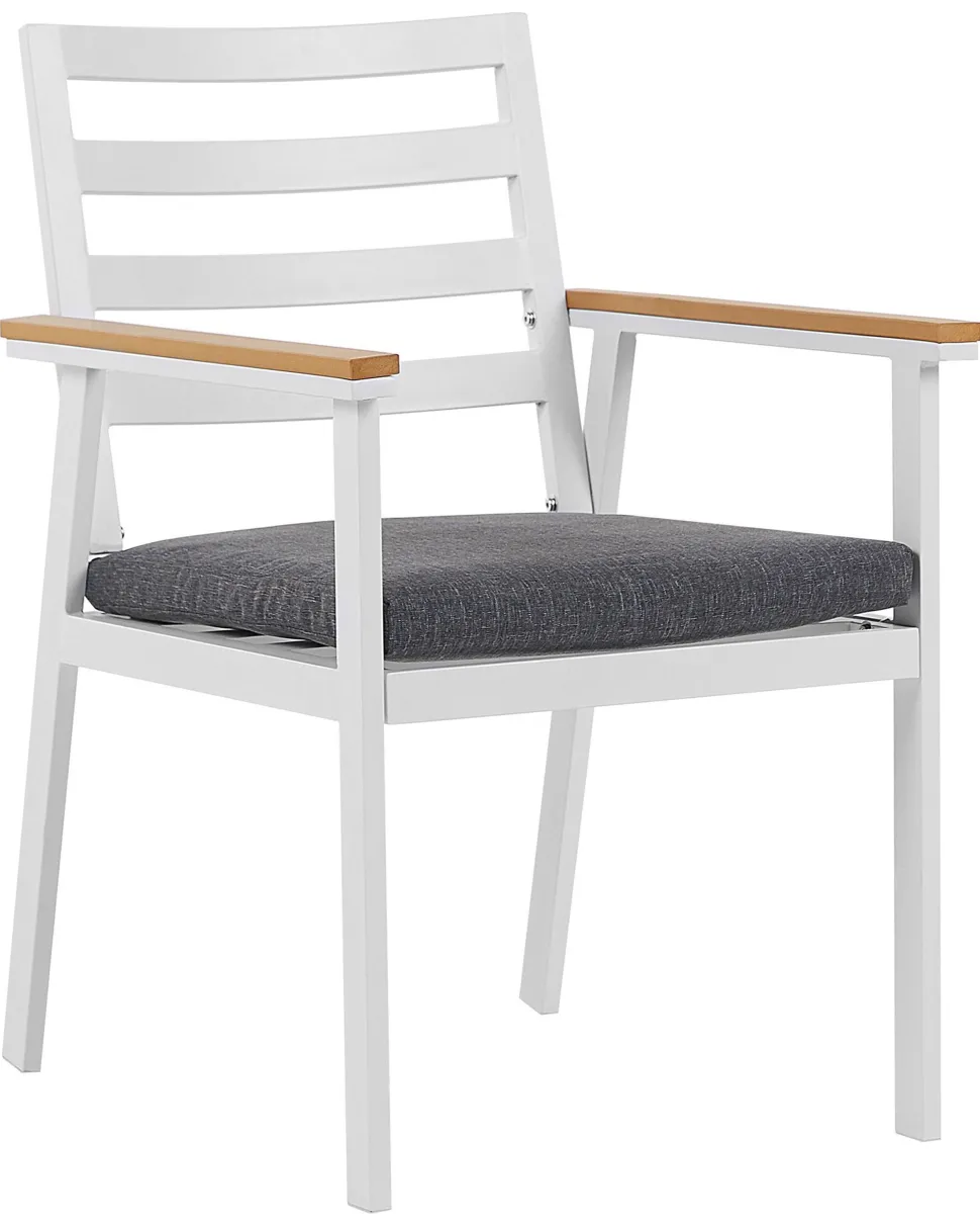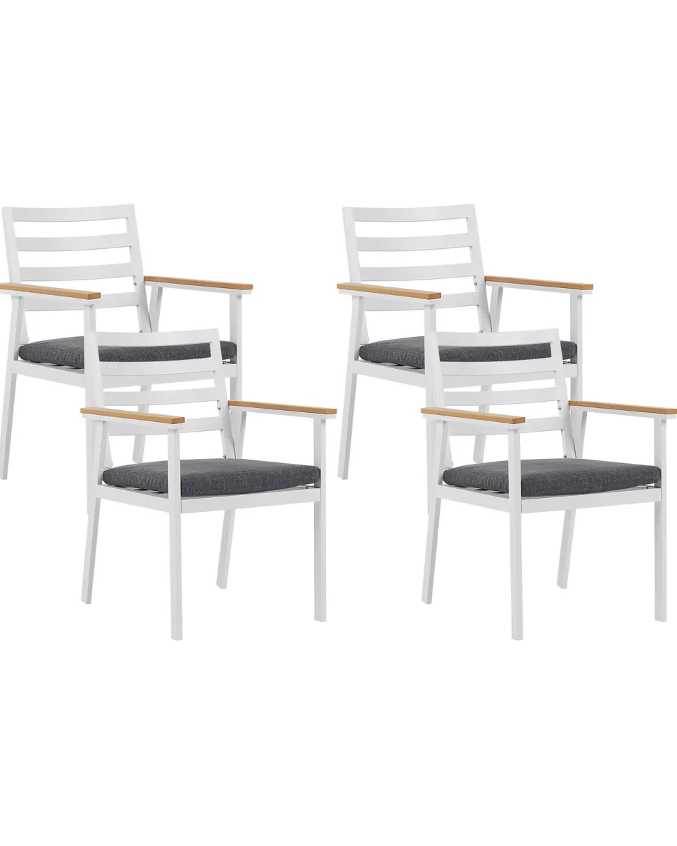 Beliani Valkoinen 4 Kpl Puutarhatuolisetti Tummanharmailla Tyynyilla Cavoli Cheap